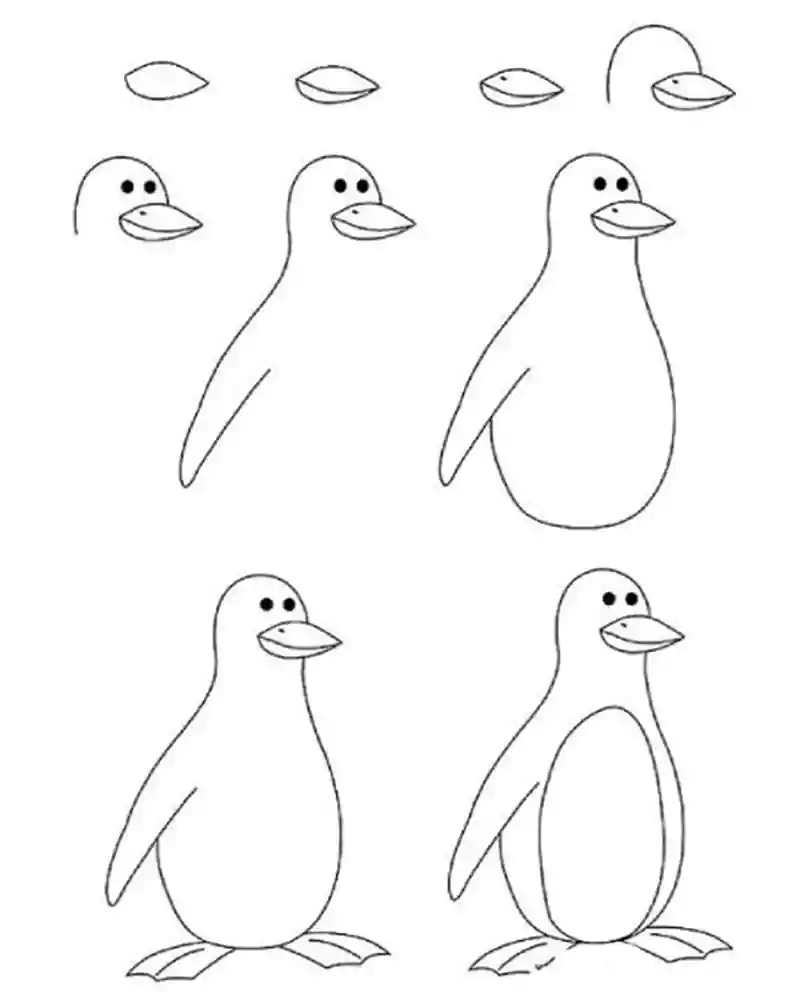 آموزش "نقاشی پنگوئن" برای کودکان-گام به گام و تصویری-بسیار ساده و بامزه-انواع سنین