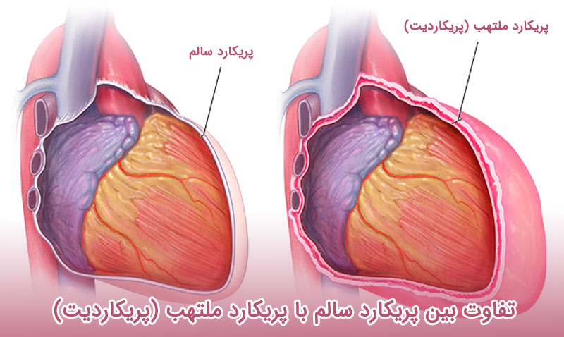 در تصویر زیر می توانید تفاوت پریکارد سالم و پریکار ملتهب را مشاهده نمایید .