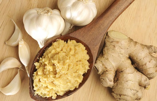 سیر و زنجبیل را به خوبی له کنید و یا در مخلوط کن با هم مخلوط کنید.
