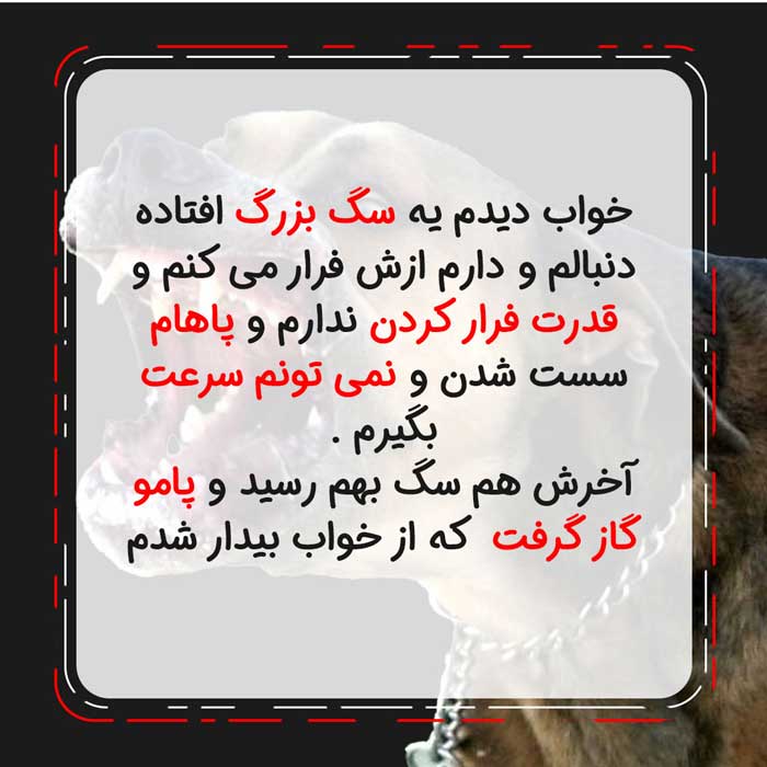 مطلب مرتبط : تعبیر خواب دندان + تعبیر خواب عروسیسایر تعبیر خواب های مرتبط با سگ