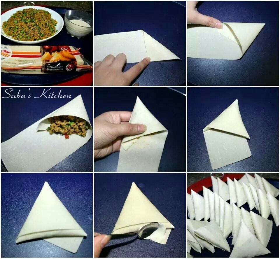 آموزش تصویری پیچیدن سمبوسه,آموزش تصویری طرز پیچیدن سمبوسه با خمیر خانگی