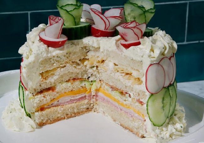 آموزش طرز تهیه کیک مرغ سرد خوشمزه و مجلسی با ژامبون مرغ و گردو