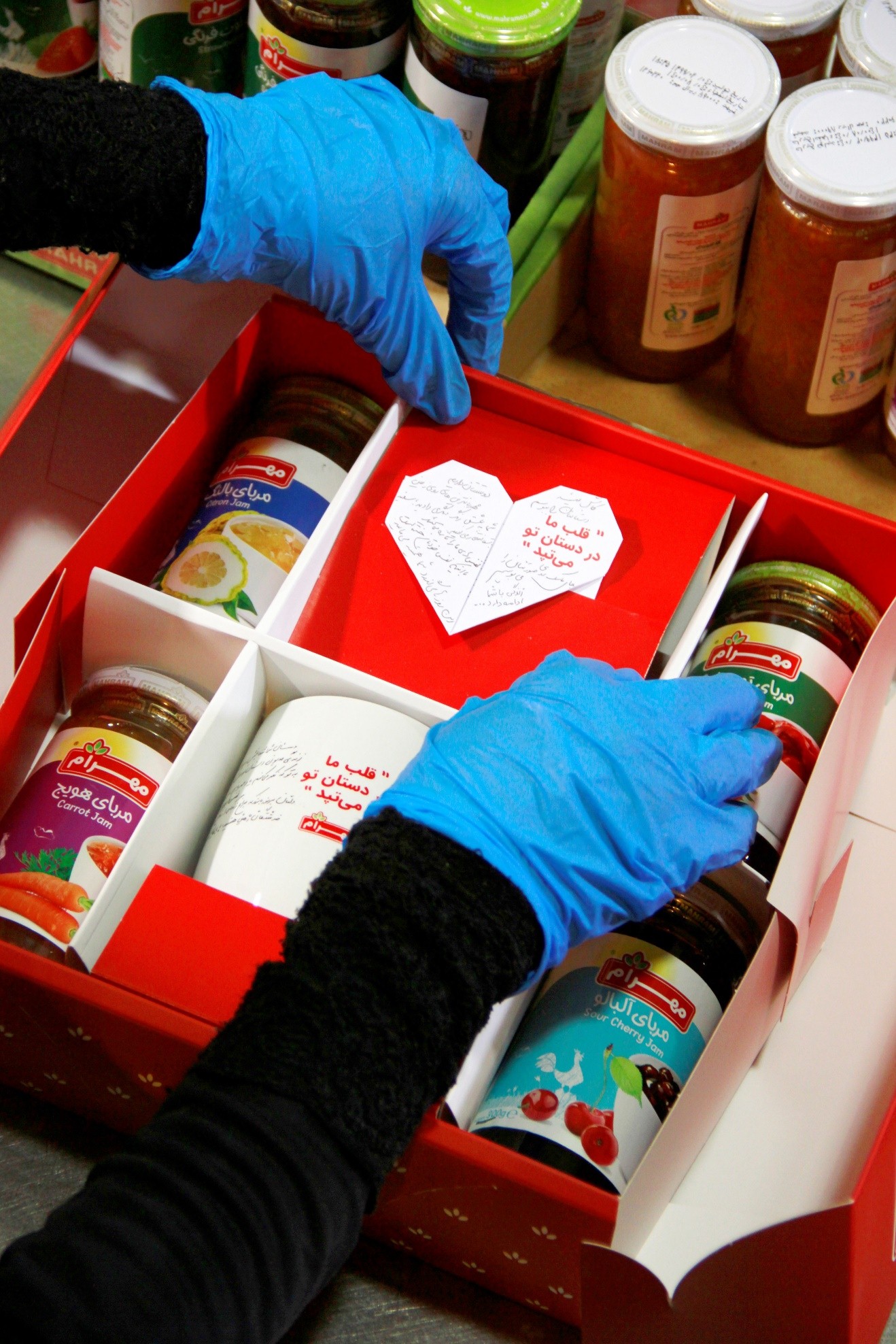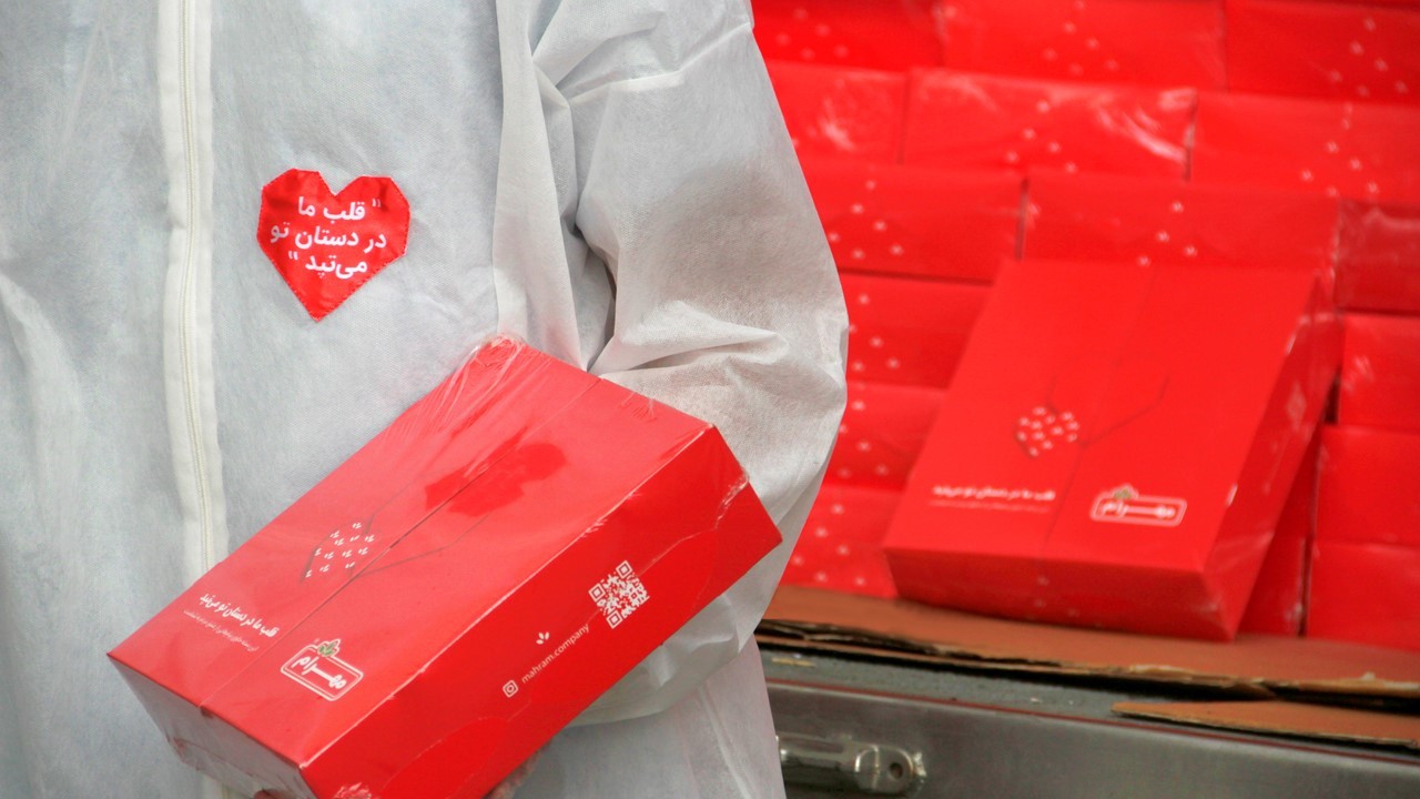 این بستهها، که در سه بخش برای بیمارستان مسیح دانشوری، بیمارستان هاجر، و آزمایشگاه ویروسشناسی کیوان ارسال شدند، حاوی هزاران پیام ارسالیِ مردم بودند که در شبکهٔ اجتماعی مهرام گردآوری و بهصورت نمادین بر روی قلبهایی درج شدهبود. افزون بر آن، پیامهایی انتخاب شده و بر روی لیوانهایی مزین به شکل قلب نقش بستهبود.