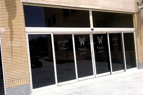- شیشه مغازه با درب اتوماتیک کشویی تک لنگه تلسکوپی یا دو لنگه